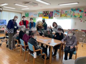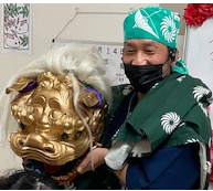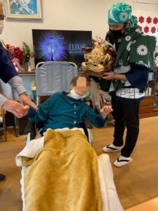 獅子舞に、手を叩いて喜ばれる方、「縁起がいいわ。」「ありがたいわ。」「賑やかで良いわ。」と利用者様からのお声を頂きました。